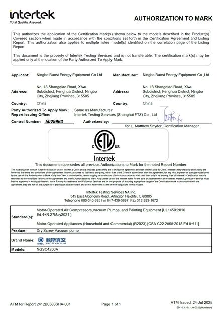 Ningbo Baosi Energy Equipment Co., Ltd. Πιστοποιήσεις